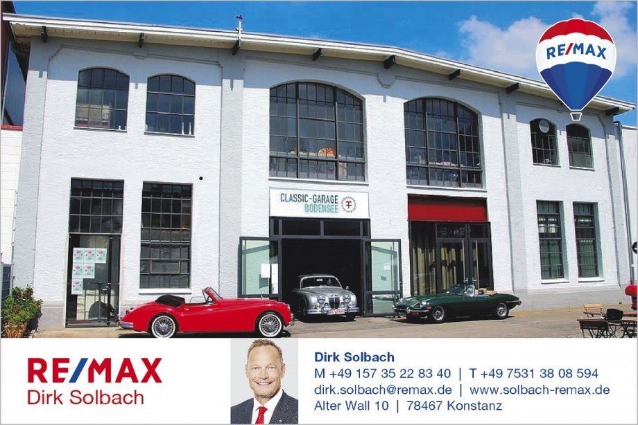 Zum Verkauf stehen 4 Innen- und 1 Außenstellplatz und befinden sich in der Classic-Garage Bodensee, einer denkmalgeschützten Halle einer alten Konstanzer Stahlgießerei, die um die Jahrhundertwende zu einem Liebhaberort für Oldtimer umgebaut wurde.